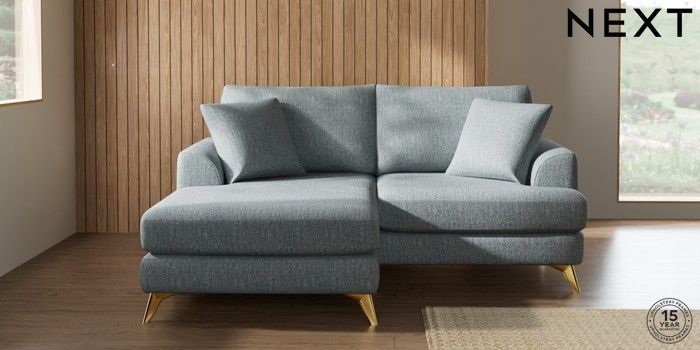 7.2.10 Buy Parker Compact Sofa Chaise - Universal Chunky Weave Mid Blue High Metal - Brass from the Seasons online shop Click here to use our website with more accessibility support, for example screen readers