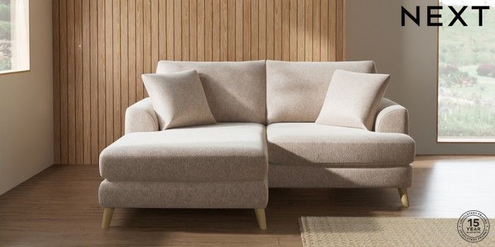 7.2.10 Buy Parker Compact Sofa Chaise - Universal Cotswold Chenille Light Natural Low Retro Tapered - Light from the Seasons online shop Click here to use our website with more accessibility support, for example screen readers