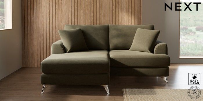 7.3.1 Buy Parker Compact Sofa Chaise - Universal Fine Chenille Easy Clean Dark Moss Green High Metal - Chrome from the Seasons online shop Click here to use our website with more accessibility support, for example screen readers