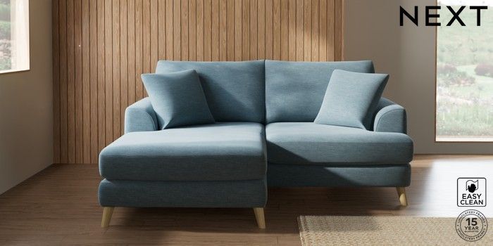 7.2.10 Buy Parker Compact Sofa Chaise - Universal Fine Chenille Easy Clean Mid Blue Low Retro Tapered - Light from the Seasons online shop Click here to use our website with more accessibility support, for example screen readers
