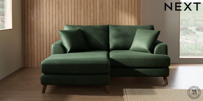 7.3.1 Buy Parker Compact Sofa Chaise - Universal Luxe Chenille Dark Green Low Retro Tapered - Mid from the Seasons online shop Click here to use our website with more accessibility support, for example screen readers