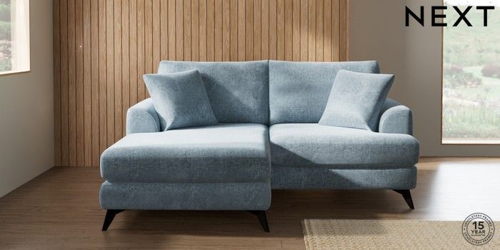 7.2.10 Buy Parker Compact Sofa Chaise - Universal Plush Chenille Light Blue High Metal - Black from the Seasons online shop Click here to use our website with more accessibility support, for example screen readers