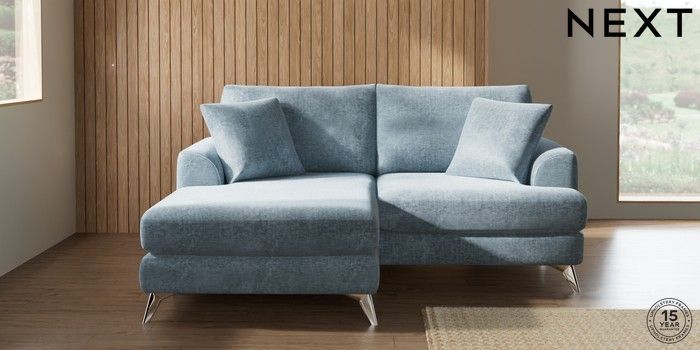 7.2.10 Buy Parker Compact Sofa Chaise - Universal Plush Chenille Light Blue High Metal - Chrome from the Seasons online shop Click here to use our website with more accessibility support, for example screen readers