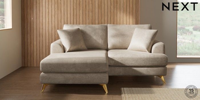 7.2.10 Buy Parker Compact Sofa Chaise - Universal Plush Chenille Light Natural High Metal - Brass from the Seasons online shop Click here to use our website with more accessibility support, for example screen readers
