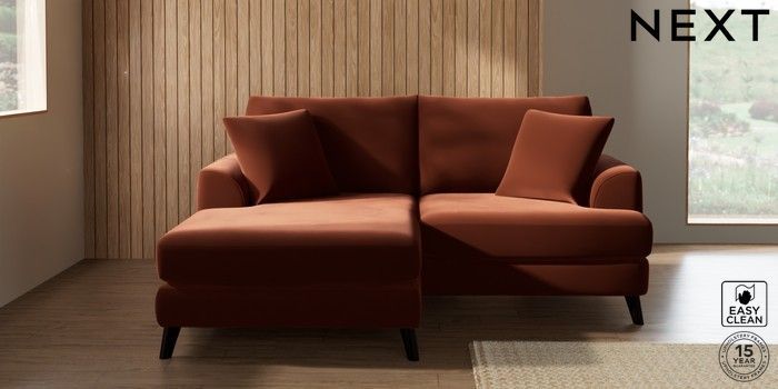 7.3.1 Buy Parker Compact Sofa Chaise - Universal Plush Velvet Easy Clean Ginger Orange Low Retro Tapered - Dark from the Seasons online shop Click here to use our website with more accessibility support, for example screen readers