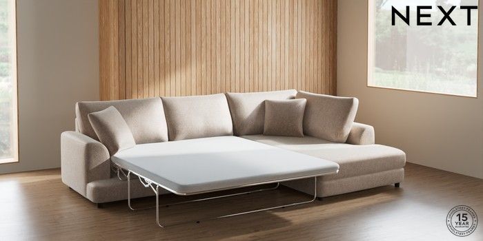 7.2.10 Buy Parker Corner Chaise Bed - Right Hand Cotswold Chenille Light Natural Glide from the Seasons online shop Click here to use our website with more accessibility support, for example screen readers