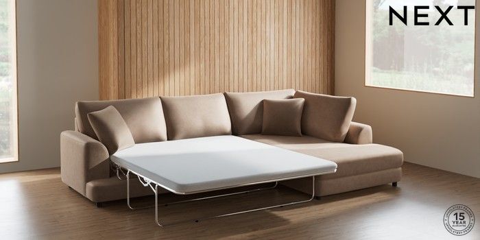 7.2.10 Buy Parker Corner Chaise Bed - Right Hand Luxe Chenille Mid Natural Glide from the Seasons online shop Click here to use our website with more accessibility support, for example screen readers
