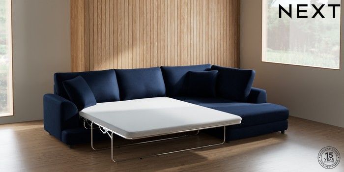 7.2.10 Buy Parker Corner Chaise Bed - Right Hand Luxe Chenille Navy Blue Glide from the Seasons online shop Click here to use our website with more accessibility support, for example screen readers