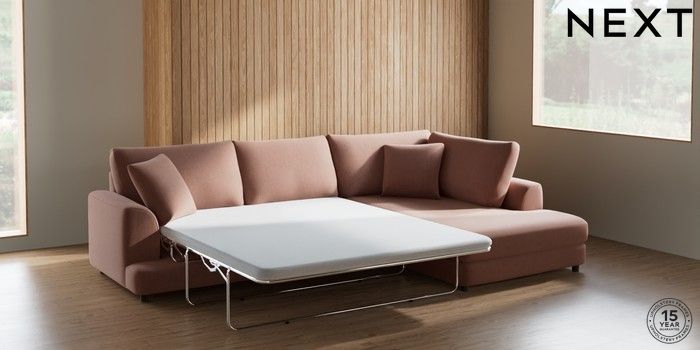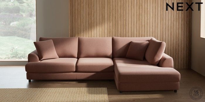 7.2.10 Buy Parker Corner Chaise Bed - Right Hand Relaxed Linen Look Light Rust Brown Glide from the Seasons online shop Click here to use our website with more accessibility support, for example screen readers
