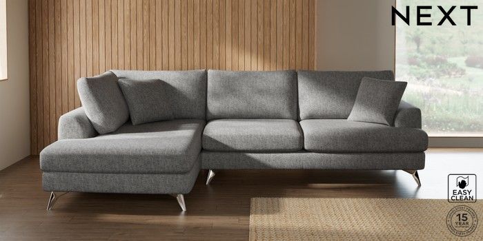 7.3.1 Buy Parker Large Corner Chaise - Left Hand Chunky Boucle Easy Clean Light Grey High Metal - Chrome from the Seasons online shop Click here to use our website with more accessibility support, for example screen readers