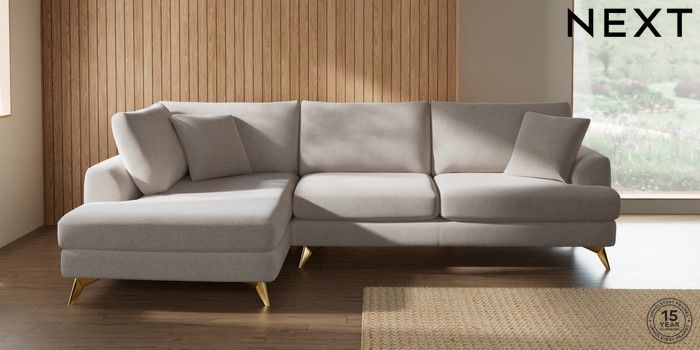 7.3.1 Buy Parker Large Corner Chaise - Left Hand Chunky Chenille Oyster High Metal - Brass from the Seasons online shop Click here to use our website with more accessibility support, for example screen readers