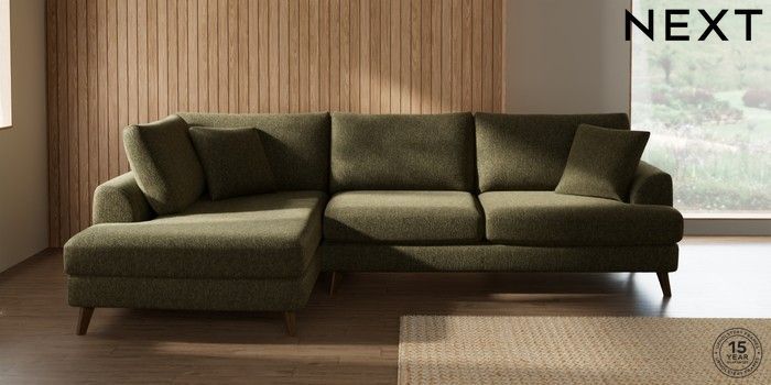 7.3.1 Buy Parker Large Corner Chaise - Left Hand Cotswold Chenille Dark Green Low Retro Tapered - Mid from the Seasons online shop Click here to use our website with more accessibility support, for example screen readers