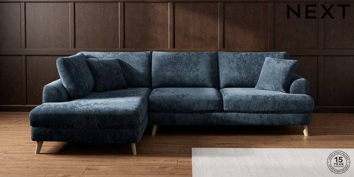 7.3.1 Buy Parker Large Corner Chaise - Left Hand Distressed Velour Midnight Blue Low Retro Tapered - Light from the Seasons online shop Click here to use our website with more accessibility support, for example screen readers