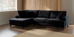 7.3.1 Buy Parker Large Corner Chaise - Left Hand Fine Chenille Easy Clean Black Low Retro Tapered - Dark from the Seasons online shop Click here to use our website with more accessibility support, for example screen readers