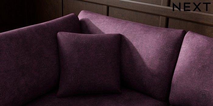 7.3.1 Buy Parker Large Corner Chaise - Left Hand Plush Chenille Dark Plum Purple Low Retro Tapered - Mid from the Seasons online shop Click here to use our website with more accessibility support, for example screen readers