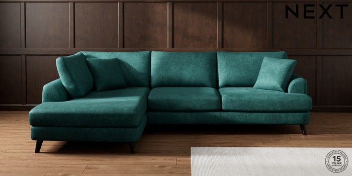 7.3.1 Buy Parker Large Corner Chaise - Left Hand Plush Chenille Dark Teal Green Low Retro Tapered - Dark from the Seasons online shop Click here to use our website with more accessibility support, for example screen readers