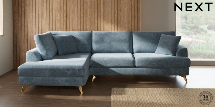 7.3.1 Buy Parker Large Corner Chaise - Left Hand Plush Chenille Light Blue High Metal - Brass from the Seasons online shop Click here to use our website with more accessibility support, for example screen readers
