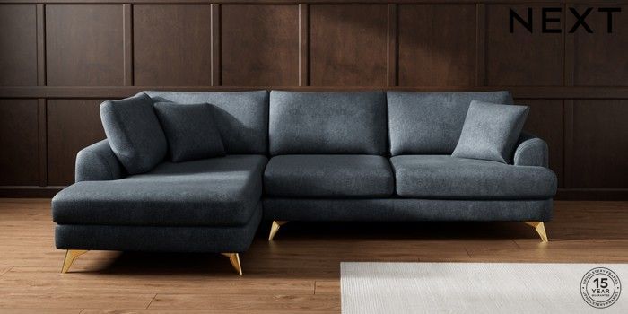7.3.1 Buy Parker Large Corner Chaise - Left Hand Plush Chenille Slate Blue High Metal - Brass from the Seasons online shop Click here to use our website with more accessibility support, for example screen readers