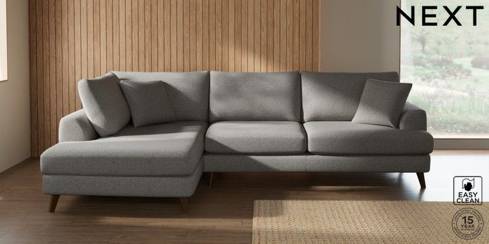 7.3.1 Buy Parker Large Corner Chaise - Left Hand Woven Chenille Easy Clean Light Grey Low Retro Tapered - Mid from the Seasons online shop Click here to use our website with more accessibility support, for example screen readers