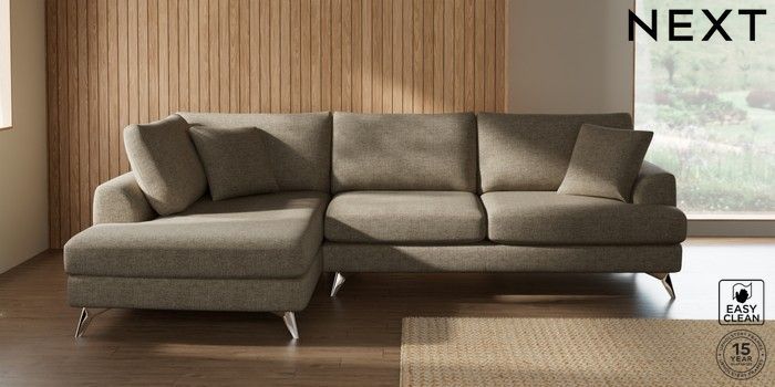 7.3.1 Buy Parker Large Corner Chaise - Left Hand Woven Chenille Easy Clean Mid Natural High Metal - Chrome from the Seasons online shop Click here to use our website with more accessibility support, for example screen readers