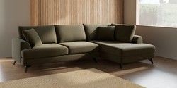 7.3.1 Buy Parker Large Corner Chaise - Right Hand Fine Chenille Easy Clean Dark Moss Green High Metal - Black from the Seasons online shop Click here to use our website with more accessibility support, for example screen readers