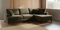 7.3.1 Buy Parker Large Corner Chaise - Right Hand Fine Chenille Easy Clean Dark Moss Green Low Retro Tapered - Dark from the Seasons online shop Click here to use our website with more accessibility support, for example screen readers
