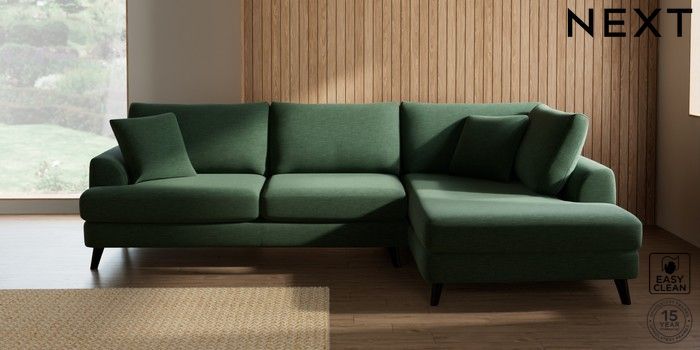 7.3.1 Buy Parker Large Corner Chaise - Right Hand Fine Chenille Easy Clean Mid Khaki Green Low Retro Tapered - Dark from the Seasons online shop Click here to use our website with more accessibility support, for example screen readers