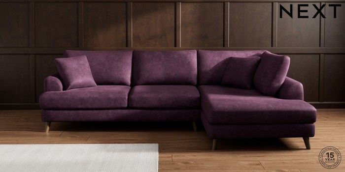 7.3.1 Buy Parker Large Corner Chaise - Right Hand Plush Chenille Dark Plum Purple Low Retro Tapered - Mid from the Seasons online shop Click here to use our website with more accessibility support, for example screen readers