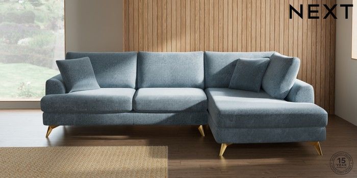 7.3.1 Buy Parker Large Corner Chaise - Right Hand Plush Chenille Light Blue High Metal - Brass from the Seasons online shop Click here to use our website with more accessibility support, for example screen readers
