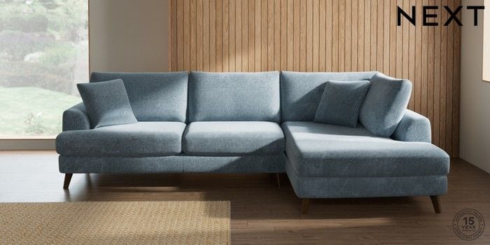 7.3.1 Buy Parker Large Corner Chaise - Right Hand Plush Chenille Light Blue Low Retro Tapered - Mid from the Seasons online shop Click here to use our website with more accessibility support, for example screen readers