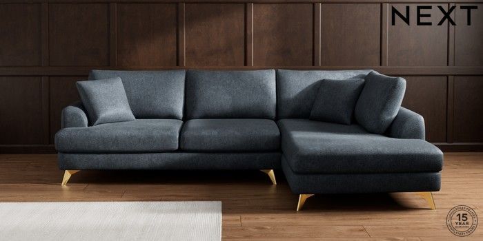 7.3.1 Buy Parker Large Corner Chaise - Right Hand Plush Chenille Slate Blue High Metal - Brass from the Seasons online shop Click here to use our website with more accessibility support, for example screen readers