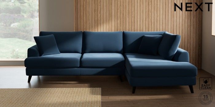 7.3.1 Buy Parker Large Corner Chaise - Right Hand Plush Velvet Easy Clean Airforce Blue Low Retro Tapered - Dark from the Seasons online shop Click here to use our website with more accessibility support, for example screen readers