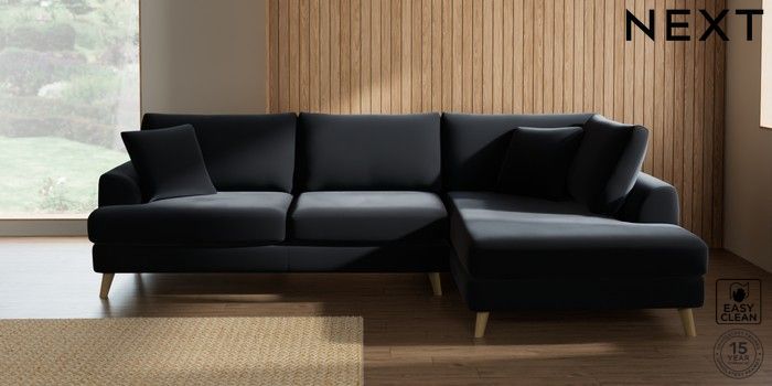 7.3.1 Buy Parker Large Corner Chaise - Right Hand Plush Velvet Easy Clean Charcoal Grey Low Retro Tapered - Light from the Seasons online shop Click here to use our website with more accessibility support, for example screen readers