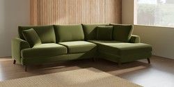 7.3.1 Buy Parker Large Corner Chaise - Right Hand Plush Velvet Easy Clean Mid Olive Green Low Retro Tapered - Mid from the Seasons online shop