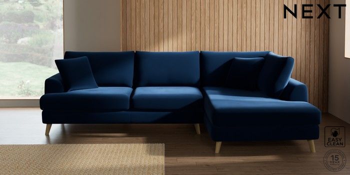 7.3.1 Buy Parker Large Corner Chaise - Right Hand Plush Velvet Easy Clean Navy Blue Low Retro Tapered - Light from the Seasons online shop Click here to use our website with more accessibility support, for example screen readers