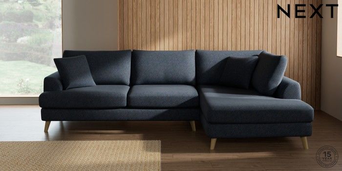 7.3.1 Buy Parker Large Corner Chaise - Right Hand Tweedy Chenille Navy Blue Low Retro Tapered - Light from the Seasons online shop Click here to use our website with more accessibility support, for example screen readers
