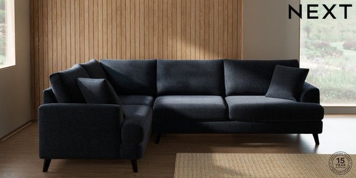 7.3.1 Buy Parker Large Corner Sofa - Left Hand Boucle Chenille Dark Slate Blue Low Retro Tapered - Dark from the Seasons online shop Click here to use our website with more accessibility support, for example screen readers