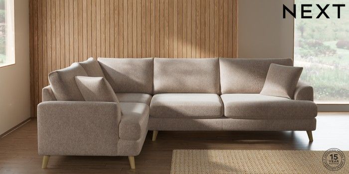 7.3.1 Buy Parker Large Corner Sofa - Left Hand Cotswold Chenille Light Natural Low Retro Tapered - Light from the Seasons online shop Click here to use our website with more accessibility support, for example screen readers