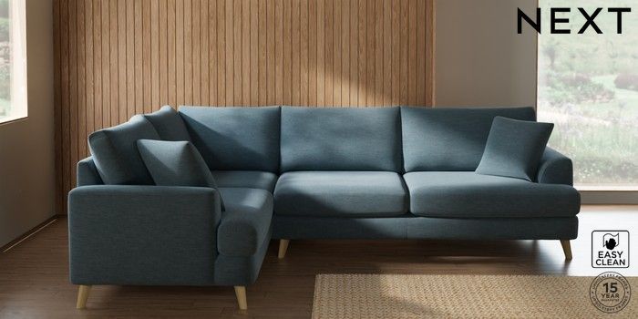 7.2.10 Buy Parker Large Corner Sofa - Left Hand Fine Chenille Easy Clean Mid Blue Low Retro Tapered - Light from the Seasons online shop Click here to use our website with more accessibility support, for example screen readers