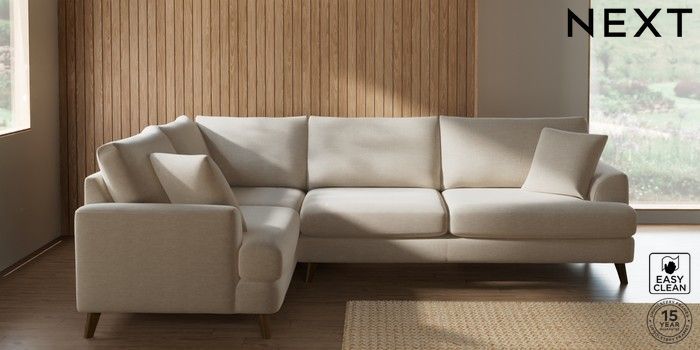 7.3.1 Buy Parker Large Corner Sofa - Left Hand Fine Chenille Easy Clean Oyster Low Retro Tapered - Mid from the Seasons online shop Click here to use our website with more accessibility support, for example screen readers