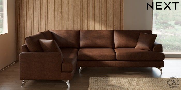 7.3.1 Buy Parker Large Corner Sofa - Left Hand Monza Faux Leather Easy Clean Chestnut Brown High Metal - Chrome from the Seasons online shop Click here to use our website with more accessibility support, for example screen readers