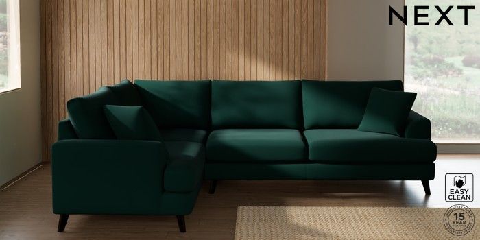 7.3.1 Buy Parker Large Corner Sofa - Left Hand Plush Velvet Easy Clean Bottle Green Low Retro Tapered - Dark from the Seasons online shop Click here to use our website with more accessibility support, for example screen readers