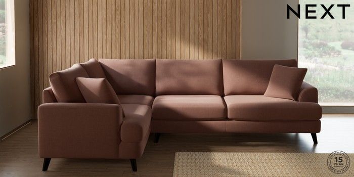 7.3.1 Buy Parker Large Corner Sofa - Left Hand Relaxed Linen Look Light Rust Brown Low Retro Tapered - Dark from the Seasons online shop Click here to use our website with more accessibility support, for example screen readers