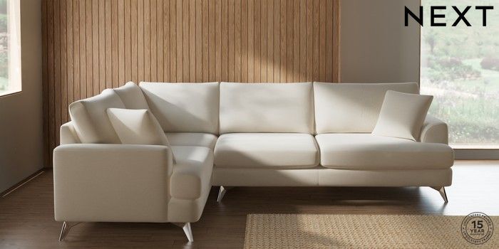 7.3.1 Buy Parker Large Corner Sofa - Left Hand Ripple Chenille Oyster High Metal - Chrome from the Seasons online shop Click here to use our website with more accessibility support, for example screen readers