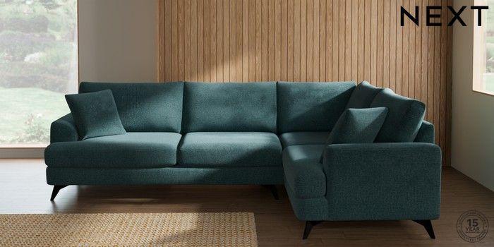 7.3.1 Buy Parker Large Corner Sofa - Right Hand Chunky Chenille Mid Teal Green High Metal - Black from the Seasons online shop Click here to use our website with more accessibility support, for example screen readers