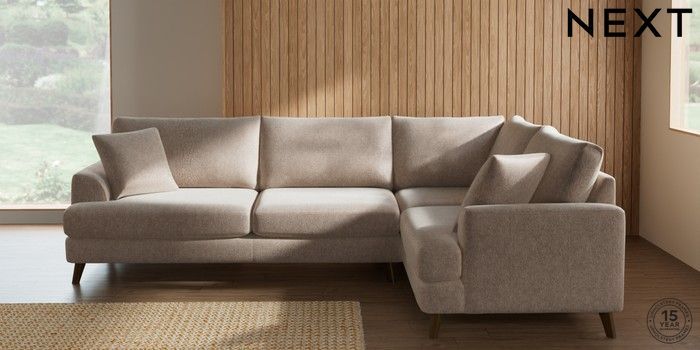 7.3.1 Buy Parker Large Corner Sofa - Right Hand Cotswold Chenille Light Natural Low Retro Tapered - Mid from the Seasons online shop Click here to use our website with more accessibility support, for example screen readers