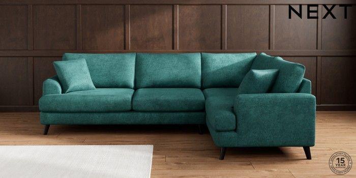 7.3.1 Buy Parker Large Corner Sofa - Right Hand Plush Chenille Dark Teal Green Low Retro Tapered - Dark from the Seasons online shop Click here to use our website with more accessibility support, for example screen readers