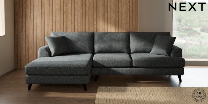 7.3.1 Buy Parker Large Sofa Chaise - Left Hand Cotswold Chenille Dark Grey Low Retro Tapered - Dark from the Seasons online shop Click here to use our website with more accessibility support, for example screen readers