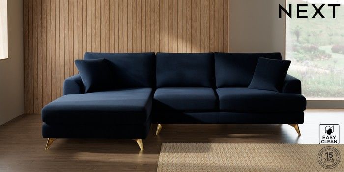 7.3.1 Buy Parker Large Sofa Chaise - Left Hand Fine Chenille Easy Clean Dark Navy Blue High Metal - Brass from the Seasons online shop Click here to use our website with more accessibility support, for example screen readers