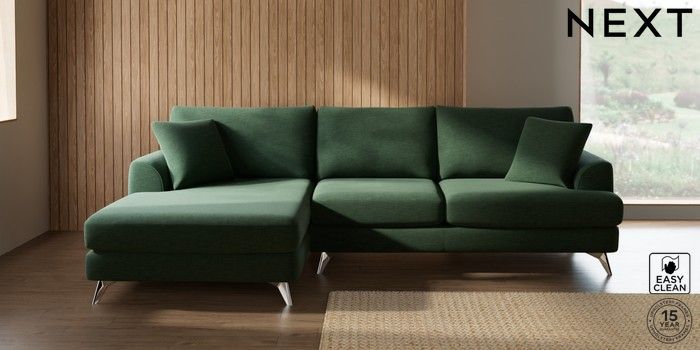 7.3.1 Buy Parker Large Sofa Chaise - Left Hand Fine Chenille Easy Clean Mid Khaki Green High Metal - Chrome from the Seasons online shop Click here to use our website with more accessibility support, for example screen readers